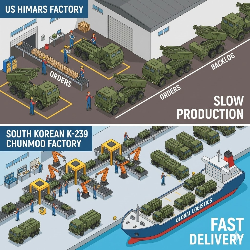 하이마스는 성능이 검증된 훌륭한 무기지만, 지금 주문하면 무려 7년 뒤에나 받을 수 있다는 것이 치명적인 단점입니다. 미국의 생산 라인이 자국 물량과 우크라이나 지원, 그리고 대만 수출 등으로 이미 포화 상태이기 때문입니다. 반면, 한국은 휴전 국가라는 특수성 덕분에 대량 생산 체제를 항상 갖추고 있습니다. 계약 후 2년 내 실전 배치가 가능하다는 점은 급박한 유럽 국가들에게 거부할 수 없는 매력 포인트가 되었습니다.