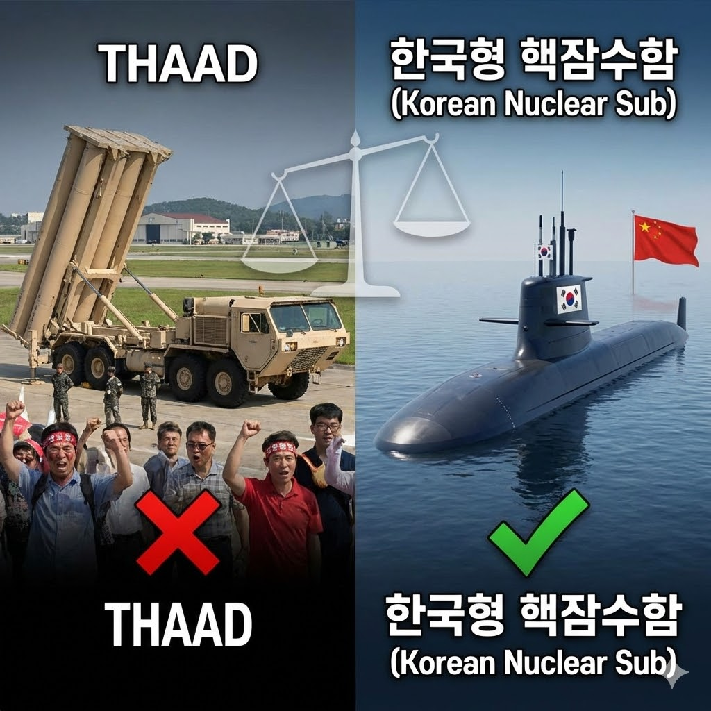 중국 입장에서 사드와 한국형 핵잠수함은 완전히 다른 성격의 무기입니다. 헷갈리셨던 분들을 위해 딱 필요한 핵심만 비교해 드립니다.