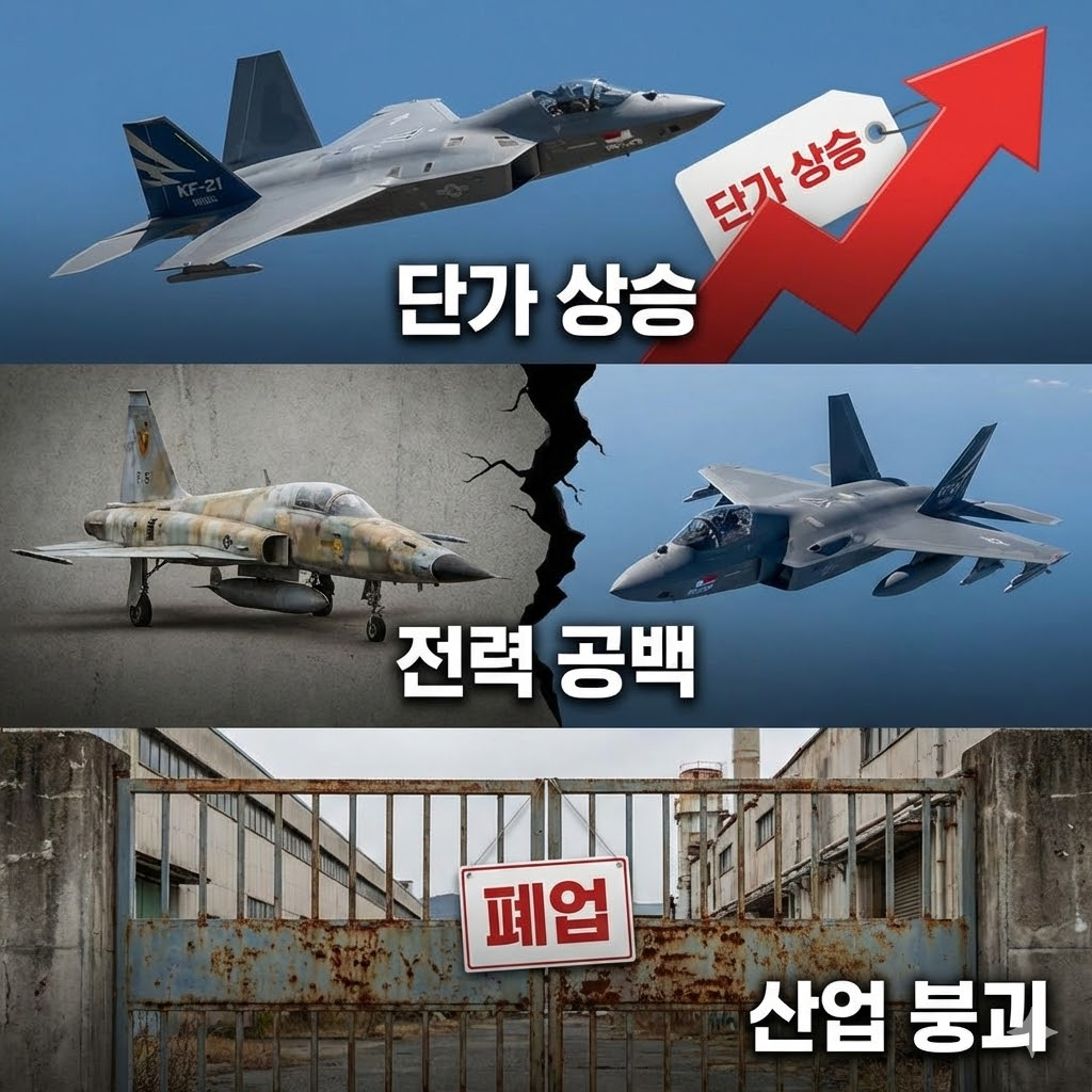 | 전력 공백 | 노후 전투기 즉시 교체 | 노후기(KF-5) 수명 연장 (사고 위험 증가) |